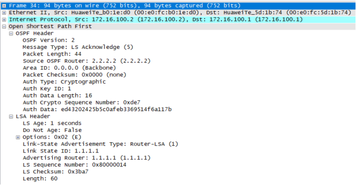- Length:表示 LSA 数据包的长度,这意味着该 LSA 的实际大小就是正在生成的 LSA。